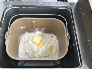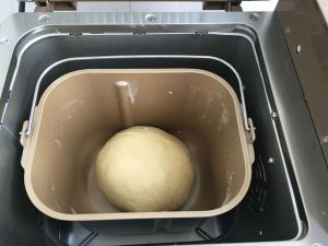 将主材料全部放入面包机中,启动标准面包菜单进行揉面。