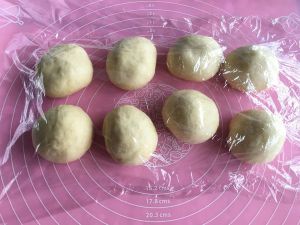 取出面团进行排气,排气完平均分割成8份,揉圆后醒面15分钟。