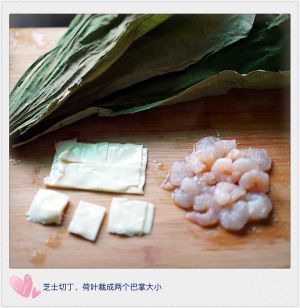 芝士切丁、荷叶裁剪成两个巴掌大小