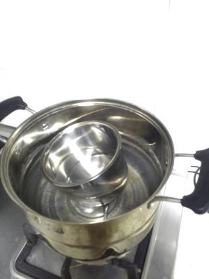 先把酸奶锅内胆在大锅中煮沸,拿出晾凉。