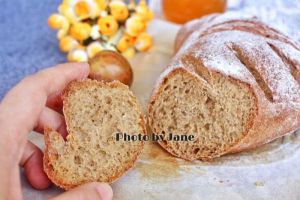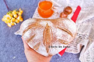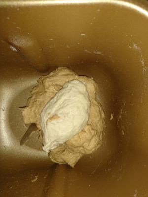 主面团的干材料放入面包机桶,加入蜂蜜,倒一半水量后启动面包机,再缓缓倒入余下的水,因为面粉吸水量不同,先倒剩大概20g的水,待面团成形后觉得不够再加