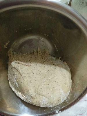 揉成团后饧20分钟,如果夏天,发酵面团直接揉进主面团,如果冬天则须复温再揉