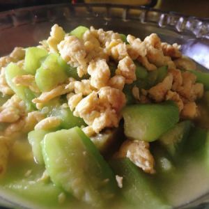 一直保持中火炒到丝瓜变得柔软 出汤汁