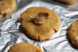 将面团搓成长条 用刀切成小块 放入烤盘 按上核桃仁