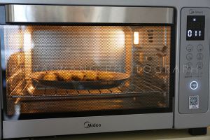 将美的烤箱预热至180度,放入明虾,中层上下火烤8-10分钟;