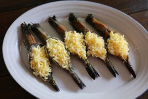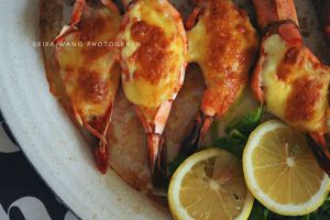 烤至虾肉熟透、芝士表面呈金黄色微焦后取出,挤上柠檬汁搭配切碎的香菜就完成了。