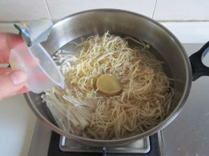 大火煮开后约再煮一分钟就可以捞出来了, 沥干水分;