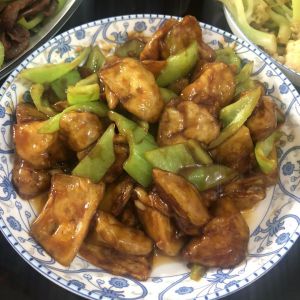 倒入碗汁,大火收汁 翻炒均匀,出锅前淋两滴香油,也可以不放