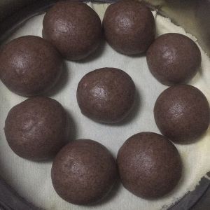 小剂子揉好后,开始整形呈光滑圆润状,把小面团放在蒸锅铺过水拧干的纱布上,面团之间留有一定的距离,盖上盖子,等待第二次发酵,大概十到十五分钟左右。