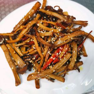 煸炒至金黄,撒入熟白芝麻就可以出锅啦!