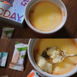 牛奶加白糖用小锅稍微加热至白糖融化即可。鸡蛋打散,倒加热的牛奶搅拌均匀