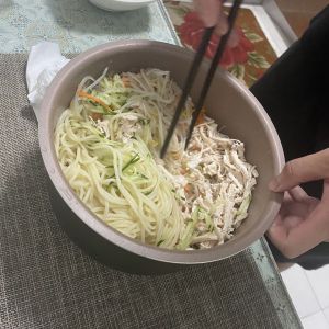 刨好黄瓜丝,胡萝卜丝,豆芽开水煮好过凉水,调料汁:葱花1勺、蒜末1勺、小米辣1勺、白芝麻1勺辣椒粉1勺,淋上热油,生抽1勺、香醋2勺、耗油1勺、白糖1勺、盐适量。