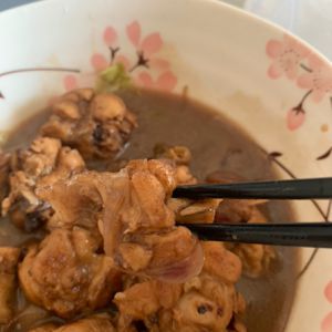 待汤汁变得粘稠时,在碗底铺几片生菜球叶子,倒出鸡翅和汤汁(本人比较喜欢喝鸡汤,所以多留了一些汤,大家也可以等到汤汁基本收完)。