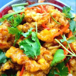 锅中留少许底油,倒入事先调好的料汁,倒入肉片,然后再倒入配菜大火翻炒均匀,最后出锅装盘,撒上香菜段,开吃吧!