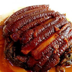 五花肉侵泡10分钟后捞出,趁热切成4毫米厚的片适量的切薄点可以减少蒸制时间。现在我们开始调味:加入适量的食用盐,一勺鸡精、加入两勺白糖加白糖是为了增鲜解腻,在加入适量的料酒,加入老抽调底色 ,加入适量的酱油30g调咸鲜问,加入适量的糖色增加亮度,最后将调好问的五花肉搅拌均匀备用
