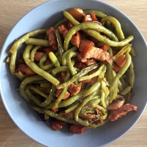 转中火,加入豆角,加一勺盐,炖20分钟。