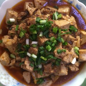 起锅,装盘,在豆腐表面洒少许花椒面。