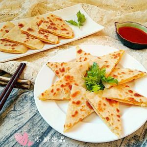 将面剂按扁,尽量擀薄成饼皮,越薄做出的月亮虾饼才越酥脆。