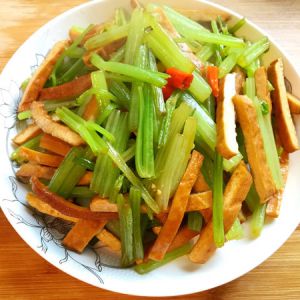 一道香喷喷的芹菜炒香干就炒好啦,开吃吧~