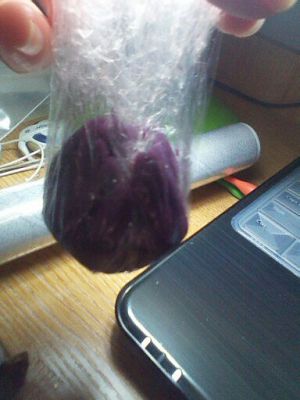 最后把紫薯全包住 调整紫薯的形状 扭紧散开保鲜膜即可