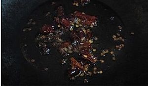 大火烧热锅中的油,加入干辣椒和花椒炸香,将花椒油淋在藕片上,盖上盖子摇匀,闷上一会儿让藕入味即可。
