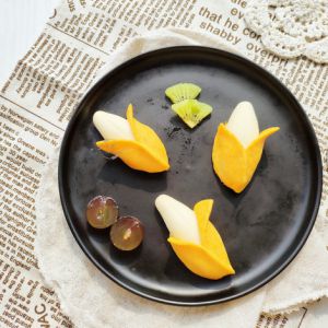 白面团用牙签按压出痕迹。一瓣放在白面团下面,
