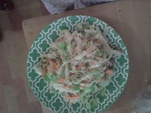 先将油倒入锅中,呆预热后,将切好的包心菜和胡萝卜倒入锅中,翻炒