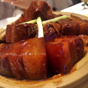 冰糖熬糖色,然后添加葱、姜、八角、香叶翻炒,倒入大厨四宝卤烧鲜适量,放肉翻匀