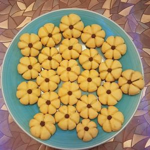 3、蒸熟的南瓜压成泥冷却后和黄油搅拌,然后再放入玉米粉和低筋面粉,搅拌匀