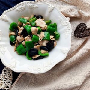 再放底油炒青椒木耳,放入鱼片加糟卤,少许盐,起锅前加淀粉水,出锅
