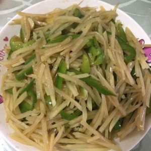 土豆变得略透明,就熟了,出锅前加入适量的盐翻炒几下。出锅装盘
