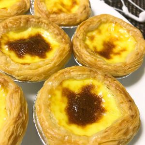 烤到蛋挞皮起酥,蛋挞表皮起焦糖色就可以了。根据自家烤箱的状态,时间20分到30分钟之间。如果时间到了没烤出颜色,可以适当延迟几分钟,多烤一会儿。