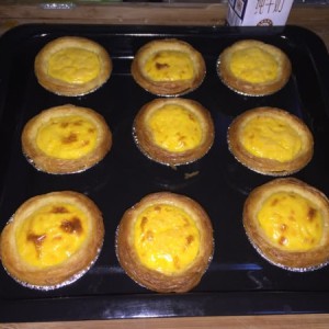 从冰箱拿出蛋挞酥皮,让解冻一会,我的蛋挞酥皮在淘宝买的,我觉得很好吃,也很方便,冷冻起来保质期一年呢,将解冻好的蛋挞酥皮放入烤盘,将蛋液倒入酥皮里!