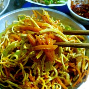 材料都切丝准备好,豆腐皮我一般洗一遍,感觉这样好吃