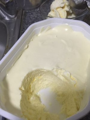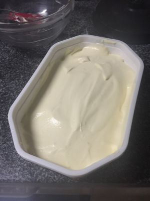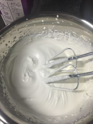 另一个盆取180g淡奶油打蛋器打至浓稠(提起打蛋器时小尖角下垂)