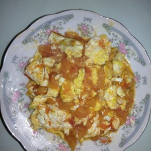 待油熟后先倒入鸡蛋,让鸡蛋在锅里两面煎熟,然后拿锅铲扎开,倒入切好的西红柿来回翻炒两分钟。再放入咸盐,味精,等。