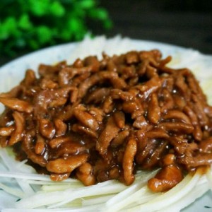 里脊切成丝,加入2汤匙生抽,1汤匙料酒,1汤匙淀粉,盐2g抓匀。腌制15分钟。