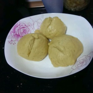 蒸好的地瓜捣烂,早上蒸的放凉了稍为有点硬,用的黄色的地瓜