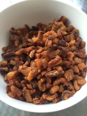 大概十几分钟的样,观察基本没有油脂了就可以关火了,关火后待凉再过滤出油渣,否则会烫到。