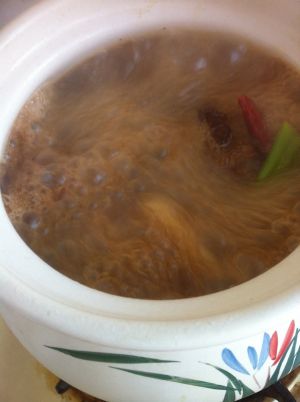 锅里放所有调料,料酒后加水大火烧开转小火炖40分钟左右放盐即可。