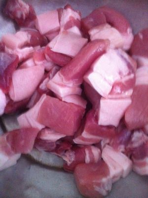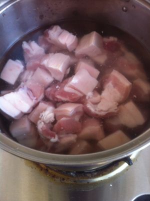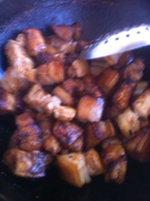 炒好色下肉煸炒放酱油腐乳后放坛子锅里。