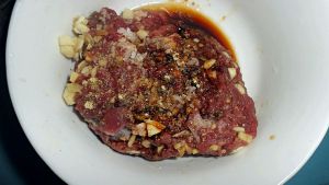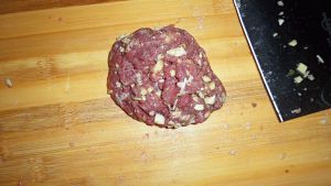 牛肉和姜蒜剁碎,牛肉也可以切粒!