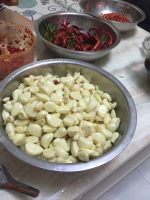 先准备辣椒和大蒜(我是做給家里十几口吃的)