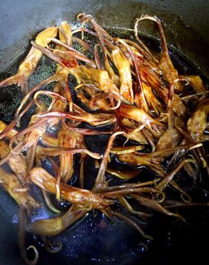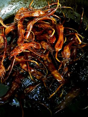 鸭舌洗干净用白酒1:5兑水浸泡两小时,然后风干至四成干。