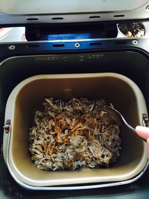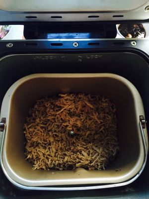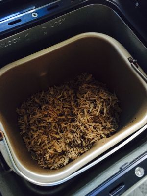 加入面包机,选择翻炒,水分会逐渐沥干,具体时间视水分沥干程度,大约1小时左右
