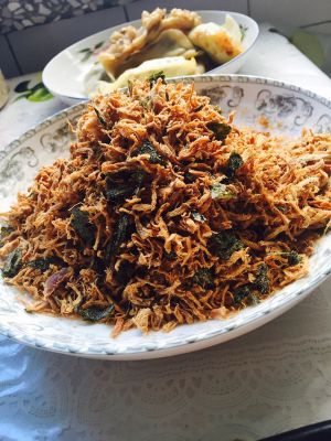 炒差不多时加入芝麻翻炒,快出锅前加入海苔翻炒均匀