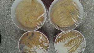 准备好小碗,小碗擦干,添少许油,沿碗里抹均匀,这样是为了倒扣碗的时候不沾碗。