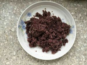 豆沙馅可以买现成的,我是自己提前做好的(具体方法在我的菜谱里查找——自制豆沙馅),豆沙馅是冷冻的,可以微波炉或烤箱化开。