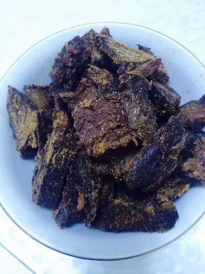 卤好的牛肉放凉,切小块,放烤盘,按自己的口味加入五香粉、孜然粉或者辣椒粉,我这次只加了五香粉