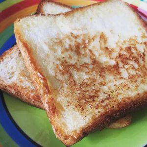 平底锅预热加入一小块黄油。让它融化然后流满平底锅。放入面包片两面都粘上黄油。转小火。在面包片上均匀撒砂糖。翻面撒另一侧。撒过砂糖后不能在锅里停留太久容易糊。